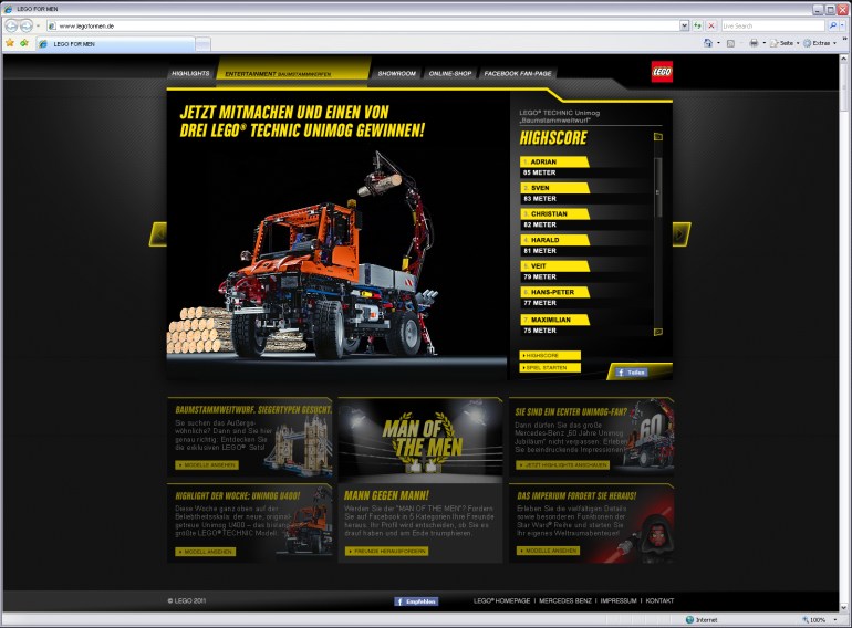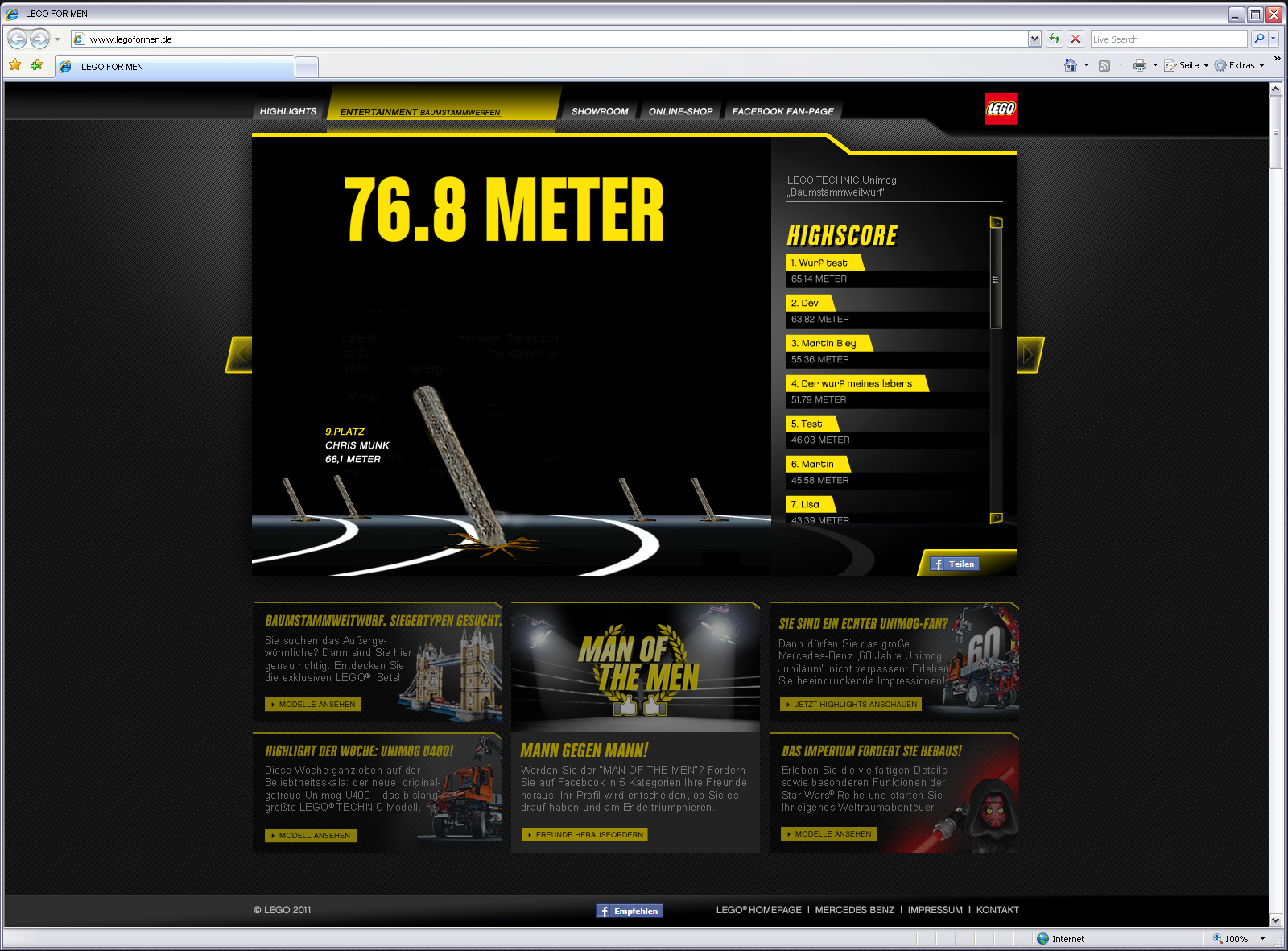 Der Wille, sich immer wieder zu übertreffen. Unter diesem Motto entwickelten wir im Rahmen der LEGO MEN Kampagne ein Web-Special für echte Männer: