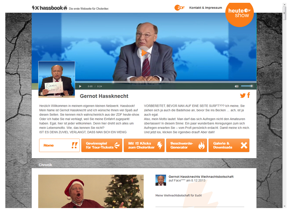 Für den Vorzeigecholeriker der ZDF heute show Gernot Hassknecht haben wir eine einzigartige Website konzipiert: